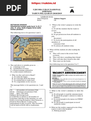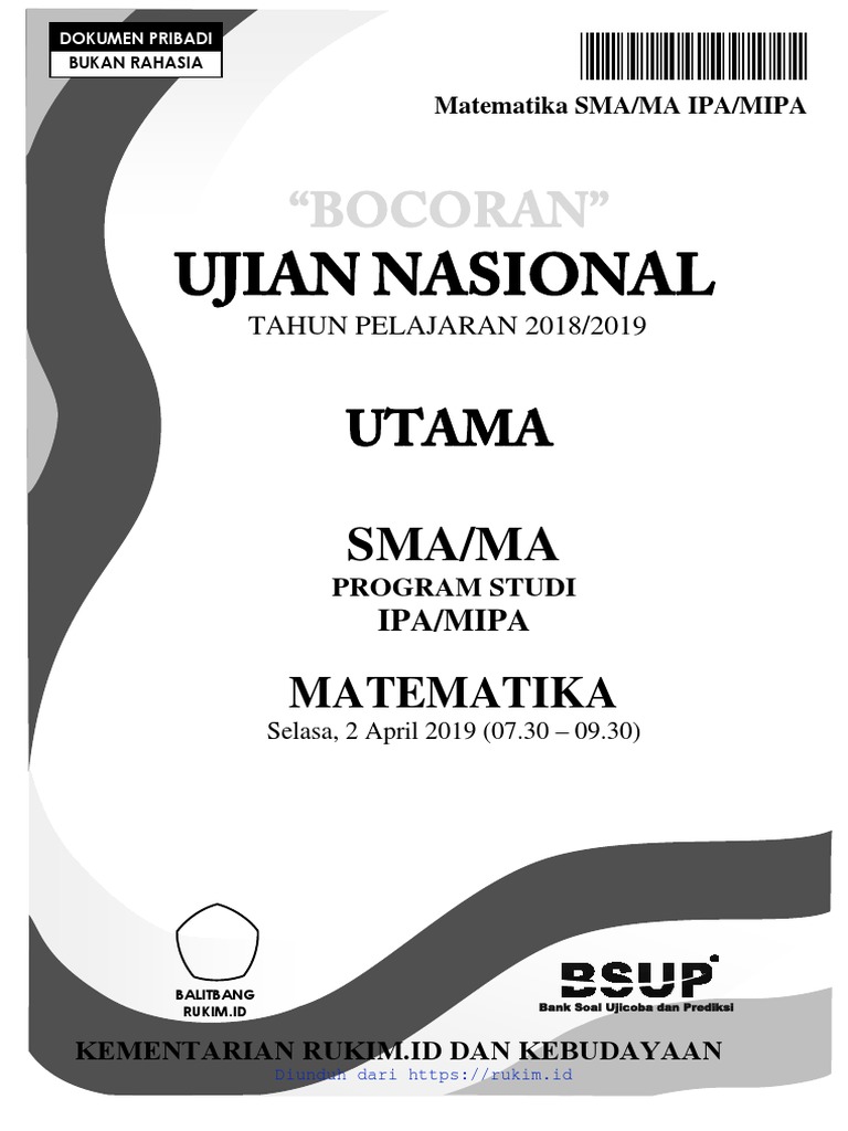 Scanned by camscanner sumber download ==> rukim.id. View rukim.id 01 ucun ipa smp 2019 a.pdf from science 135 at st. Check spelling or type a new query. There was a problem previewing permendikbud no 43 tahun 2019.pdf. Tulis identitas diri pada lembar jawab yang tersedia!