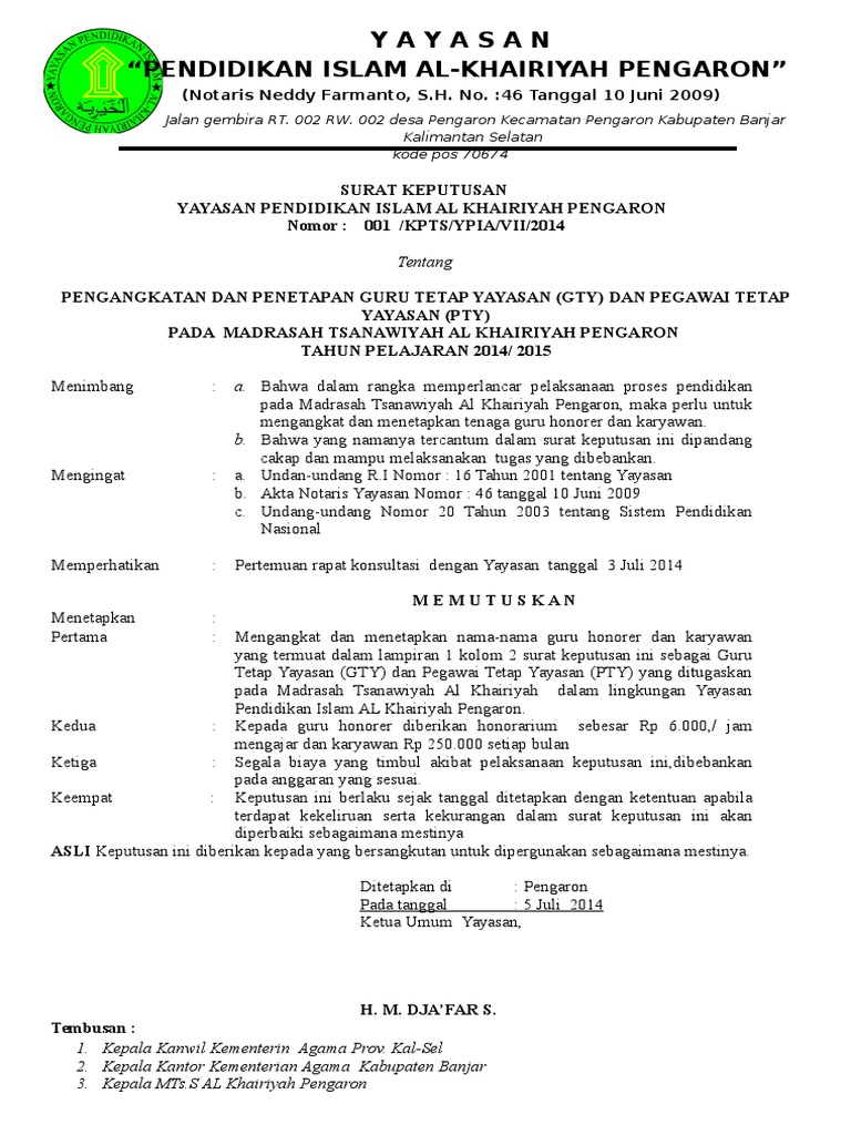 Sk Guru Tetap Yayasan / Index Of Wp Content Uploads Ultimatemember Temp Nkytawvdrsxczlzguhjiits4uawbvidmpyouixfu / Contoh surat tugas operator sekolah untuk kelola verval pd kemenag mi kalimulyo.. Pengangkatan guru tetap yayasan (gty) pada ma/mts nw peseng. Hidayah priode 2015 2020 dipandang perlu mengangkat pengurus yayasan. M e m u t u s k a n. Dalam menjalankan tugas sebagai seorang pendidik tanpa adanya surat pengangkatan berarti kita belum diakui dan percuma bekerja kalau tidak diakui secara tertulis berupa surat keputusan atau sk dari kepala sekolah atau. Contoh sk guru tetap yayasan.